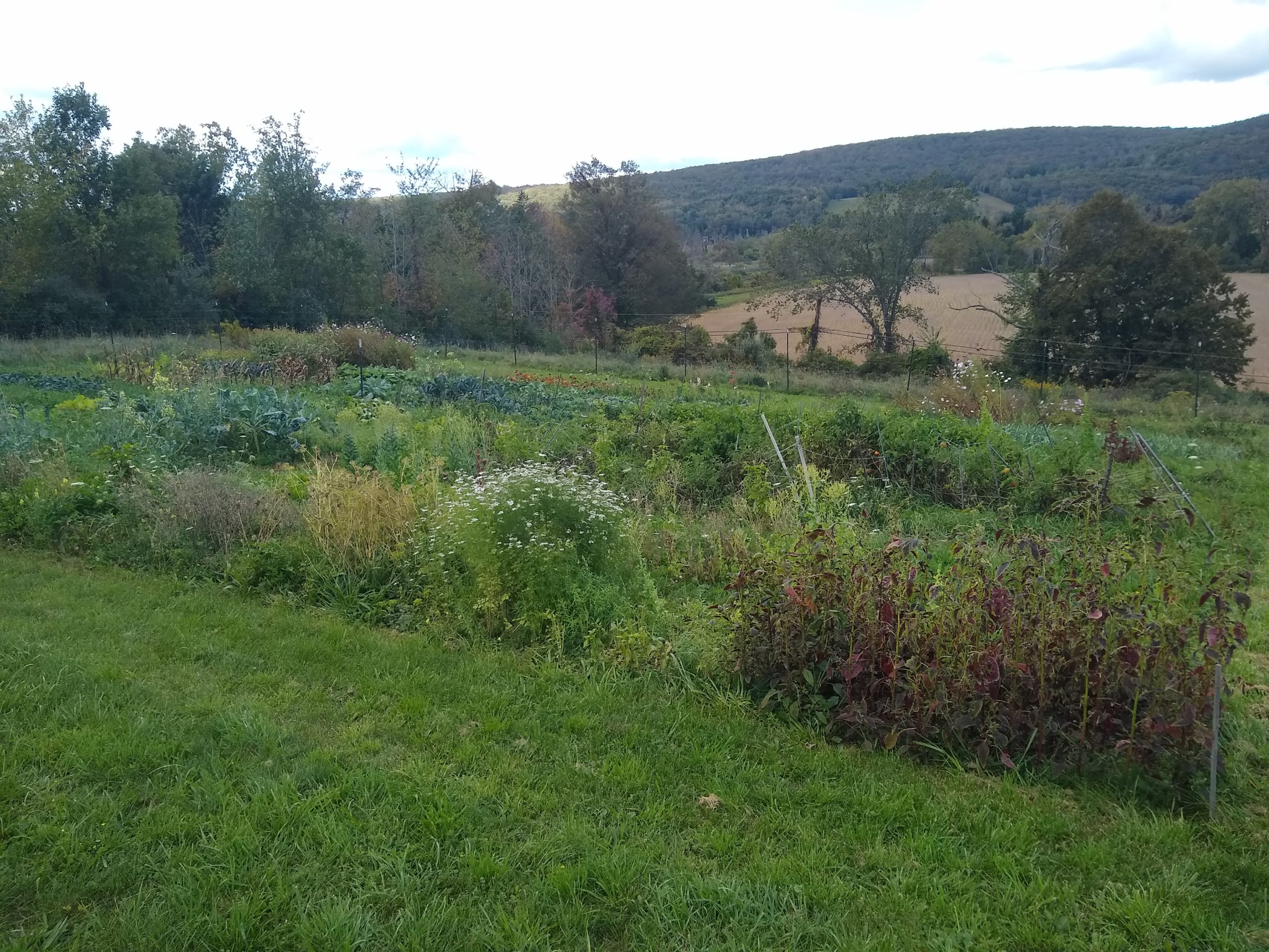 Fall is here and I’m savoring all of my favorite rituals to mark the turning season. The garage is full of drying onions, volunteer pumpkins have taken over the compost pile, and we’re eating the last of the tomatoes and peppers, knowing the frost is coming soon. Our snow pear tree has been extraordinarily prolific, producing huge golden fruits that we can’t eat fast enough. They’re normally delicacies in the markets, but we’ve been turning them into pear sauce along with all the apples, just to get through the bins of them. This week we started the work of collecting and shredding leaves to start maturing overwinter for the compost next year.