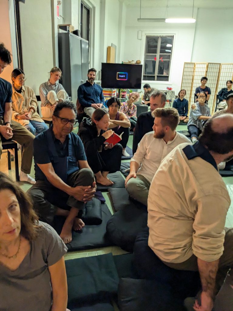 Images: Farnoosh Fathi, Norman Fischer, Ryan Lee Wong and the audience: “Grandmotherly Mind”, Boundless Mind Temple, Brooklyn, Nov 6, 2024.