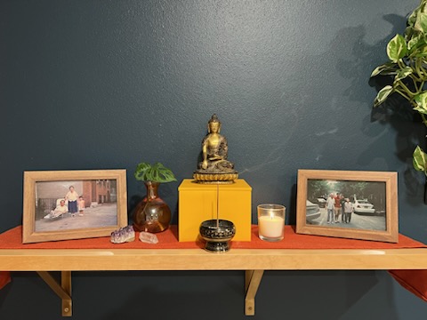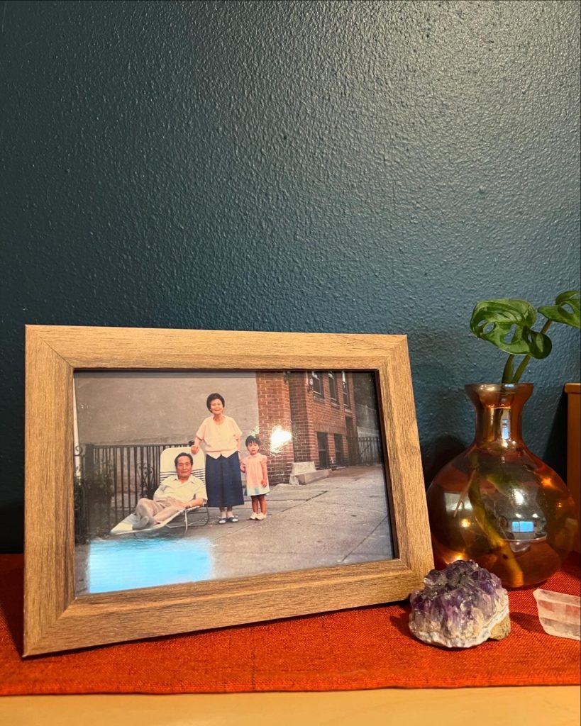 Yeah, it’s deeply personal. My parents and I don’t have a relationship now, we don’t talk, due to their anti-Black racism and refusal to accept my partner, who is Black. And I really leaned into my practice, and my partner and my shared practice, to make that decision and step into our life together. So practicing Buddhism and having an altar practice and learning more about Korean history and the experience of Koreans from the 1950s on has been really healing and really nourishing because it helps fill in a lot of gaps from my own family history. I don’t know anyone beyond my grandparents. A lot is lost and my parents have never really shared much about their past lives in Korea. Even though I don’t talk with my parents, my relationship with them is still evolving, and that took a lot of time to get to.