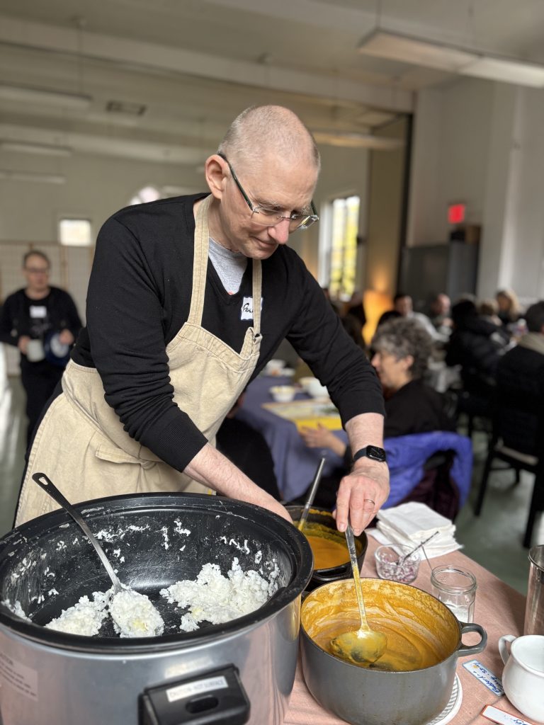 Paul and Isaac prepared lunch: rice and dal, butternut squash soup (the spicy option was popular), and salad.