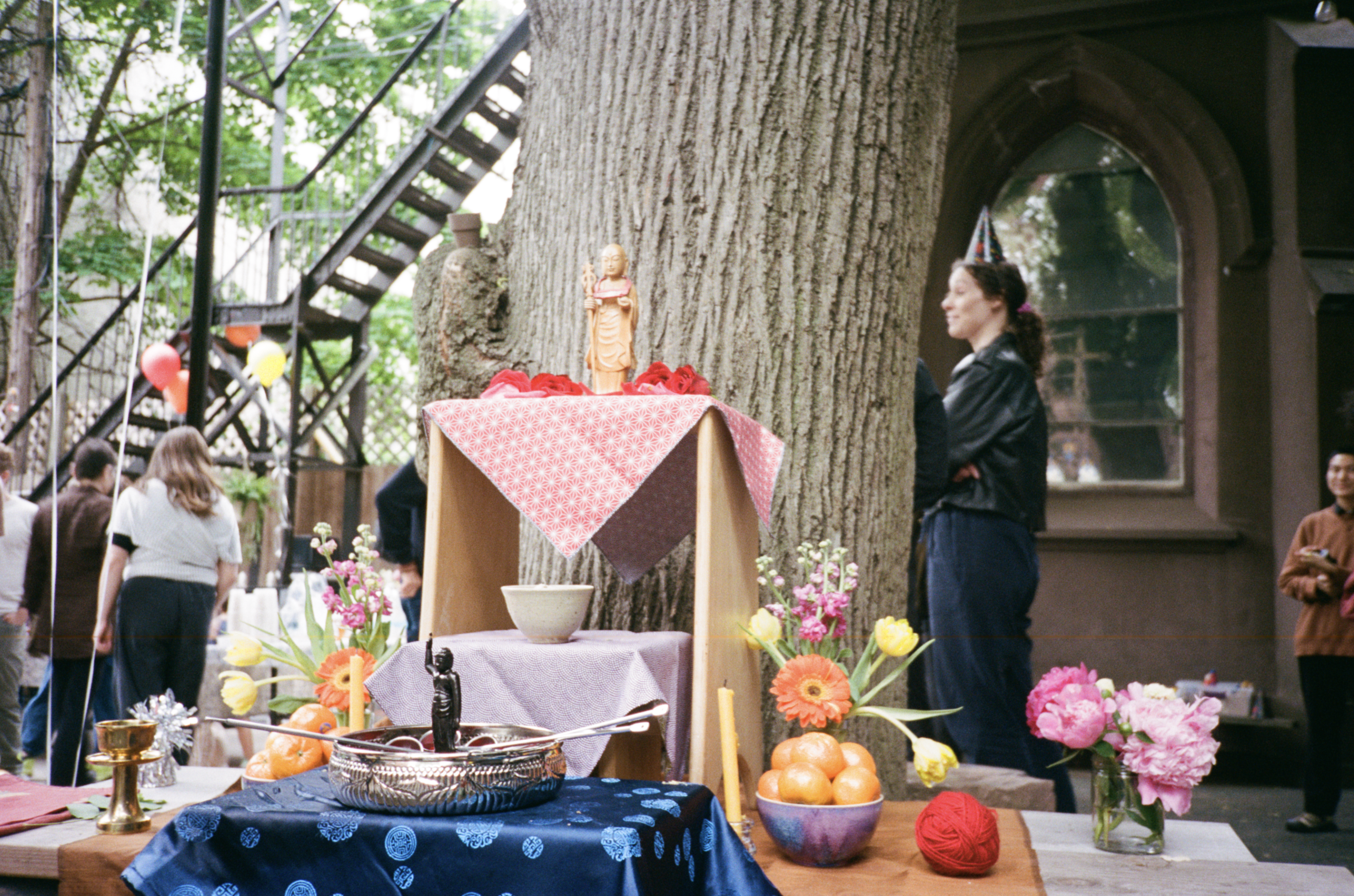 Image: Buddha’s Birthday Altar at Boundless Mind Temple courtyard, 2024, courtesy of Michelle Perkowski.